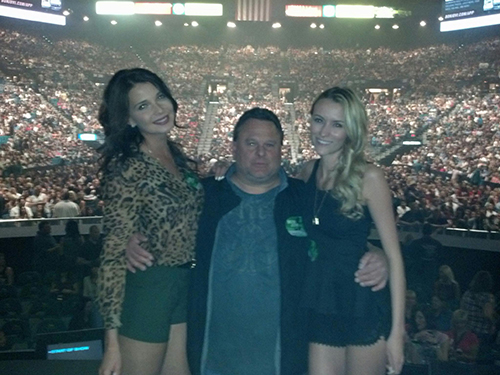 | Chris and guests on stage at the Bon Jovi concert | Chris with Aaron Eckhart | Chris with actor from Happy Days |